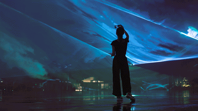 北极光天幕在园区铁血春秋北侧区域内站立观赏。您也可关注并跟随园区内指引标识到达项目位置。