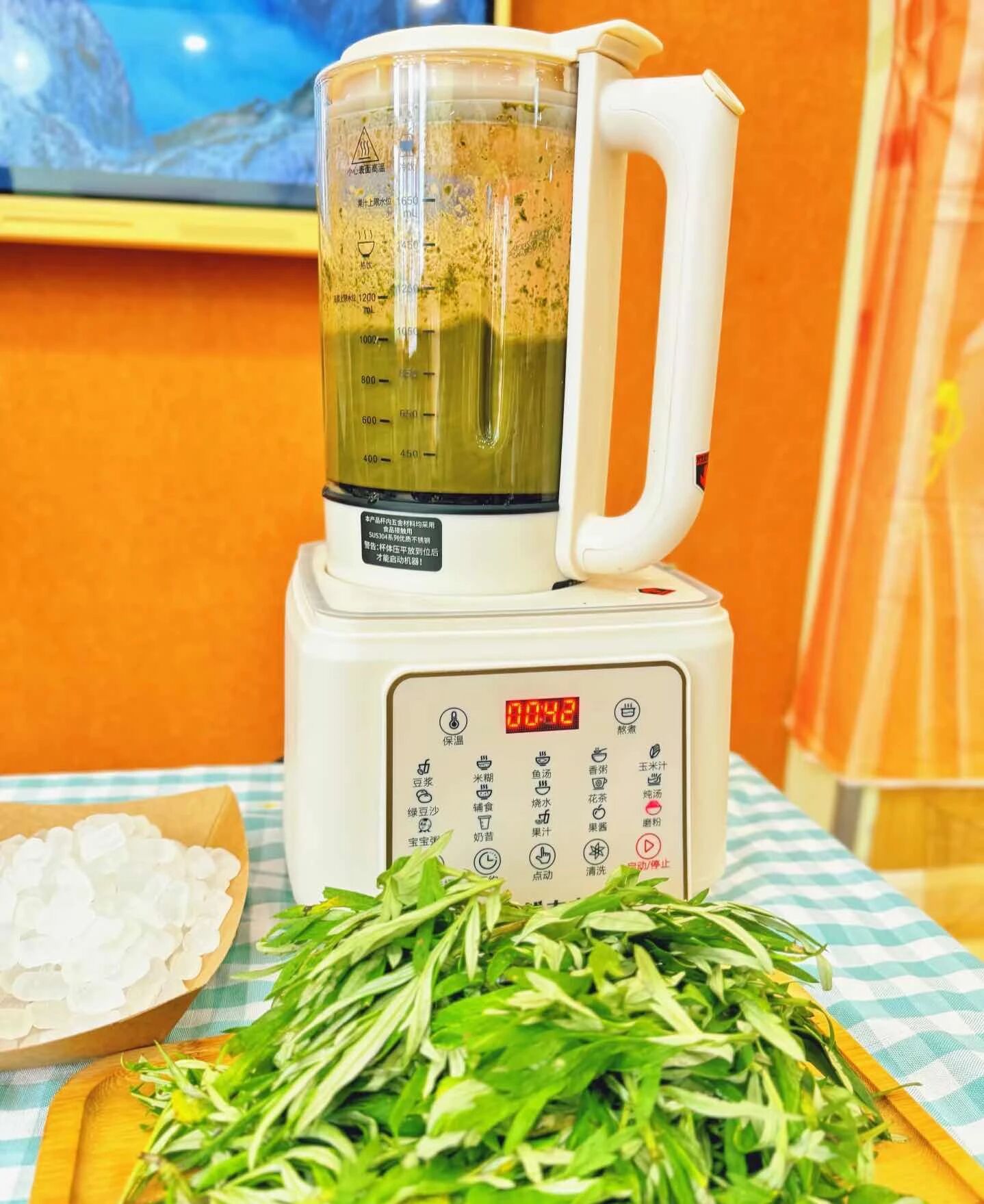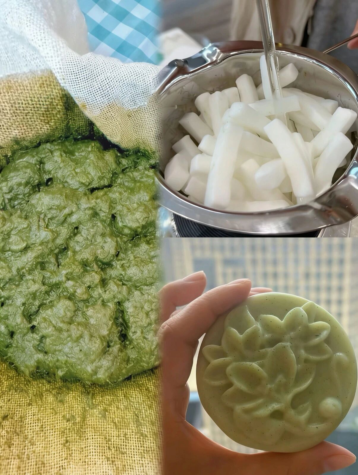 从艾草研磨、皂基融化
