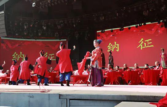 金婚夫妇们身着汉制婚服,在小花童的陪伴下慢慢走上具有浓郁时代特色的春秋大舞台;他们的脸上也许还有些羞涩,幸福的笑容却很真实。